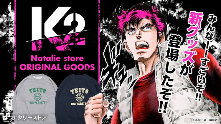 今回制作されたのは、黒須一也たちの母校・帝都大のカレッジトレーナーをイメージしたアパレルアイテム。ネイビーとグレーの2色で展開されている。トレーナーの発売とあわせ、昨年10月に販売された「K2」グッズ第1弾の再販も実施中のため、チェックしてみよう。