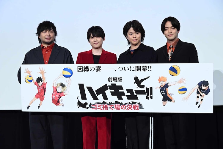 古舘春一原作による「劇場版ハイキュー!! ゴミ捨て場の決戦」の最速上映が本日2月16日0時より東京・TOHOシネマズ新宿にて開催された。上映前には日向翔陽役の村瀬歩、影山飛雄役の石川界人、孤爪研磨役の梶裕貴、黒尾鉄朗役の中村悠一が登壇し、ひと足先に映画を観た感想や、各々にとって「ハイキュー!!」とは何かについてわきあいあいと語った。