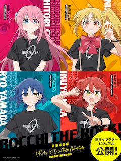 前編「Re:」が春、後編「Re:Re:」が夏に公開される劇場総集編「ぼっち・ざ・ろっく!」。キャラクターデザイン・総作画監督のけろりらが描き下ろした新たなキャラクタービジュアルでは、後藤ひとり、伊地知虹夏、山田リョウ、喜多郁代、新たな衣装に身を包んだ結束バンドの姿が描かれた。また公式サイトでは、各キャラクターの新たな立ち絵イラストも公開されている。