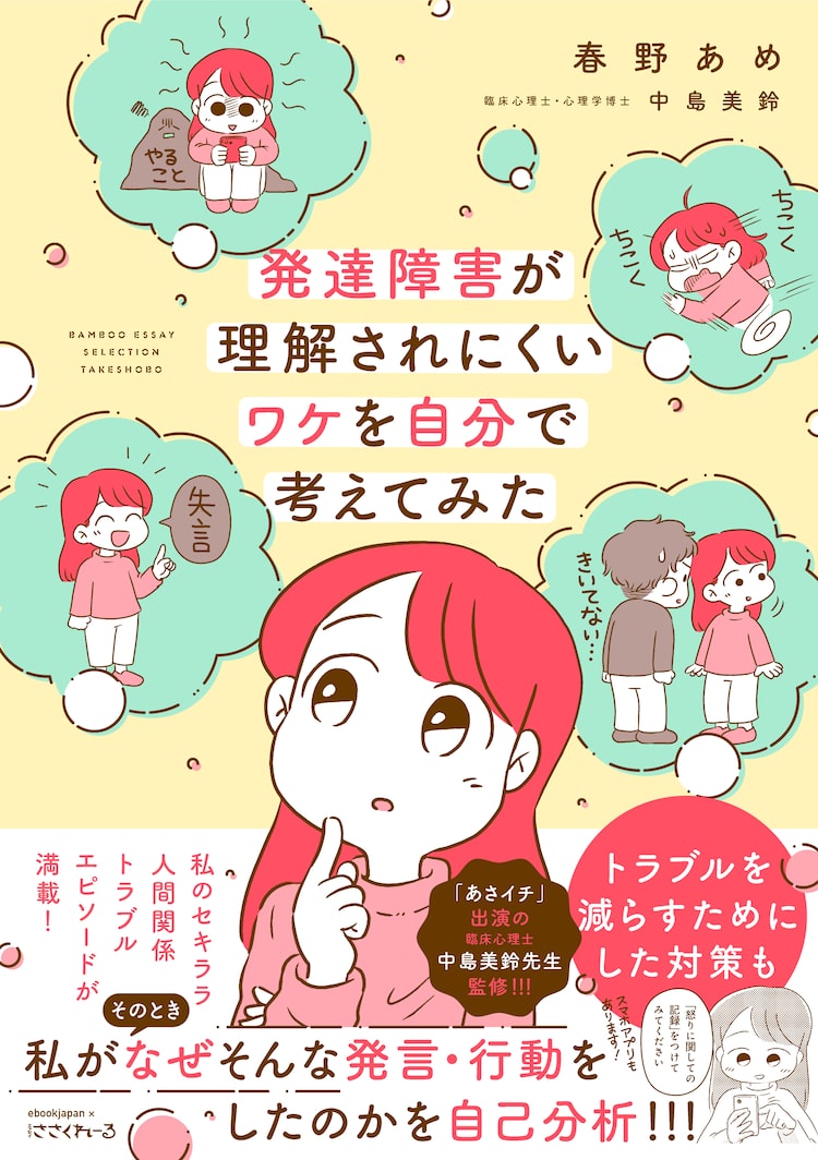 春野あめのエッセイ作品「発達障害が理解されにくいワケを自分で考えてみた」が、本日2月29日に竹書房から発売された。臨床心理士の中島美鈴が監修を務めている。