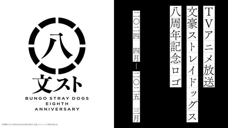 アニメ「文豪ストレイドッグス」の放送8周年を祝う企画「八周年 八大企画」が始動。その前半第4弾までの内容と、8周年の記念ロゴが公開された。