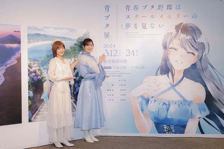 鴨志田一による小説「青春ブタ野郎」シリーズの展示イベント「青春ブタ野郎はスクールメモリーの夢を見ない -青ブタ展-」が本日3月12日に開幕。オープニングセレモニーにはアニメシリーズなどで桜島麻衣役を務めた瀬戸麻沙美、梓川花楓・かえで役を務めた久保ユリカが登場した。