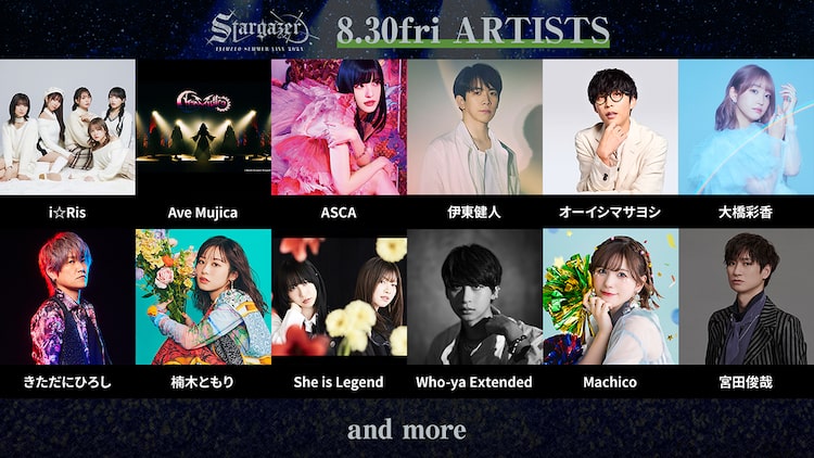 i☆Ris、Ave Mujica、ASCA、伊東健人、オーイシマサヨシ、大橋彩香、きただにひろし、楠木ともり、She is Legend、Who-ya Extended、Machico、宮田俊哉