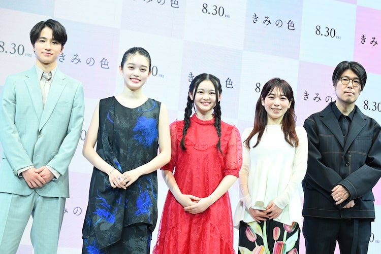 8月30日に公開される「きみの色」は、人の心が「色」で見える高校生の少女・日暮トツ子が、街の片隅にある古書店で出会った美しい色を放つ美少女・作永きみ、音楽好きの少年・影平ルイとバンドを組んだことから始まる物語。脚本は「けいおん!」シリーズ以降、山田監督とタッグを組んできた吉田玲子、音楽は牛尾憲輔、制作・プロデュースはサイエンスSARUが務め、企画・プロデュースを「すずめの戸締まり」など新海誠監督作品を手がけたSTORY inc.が担当する。本日の製作報告会には山田監督と、企画から携わっている川村元気プロデューサー、そして主人公3人の声を担当する鈴川紗由、高石あかり、木戸大聖が登壇した。