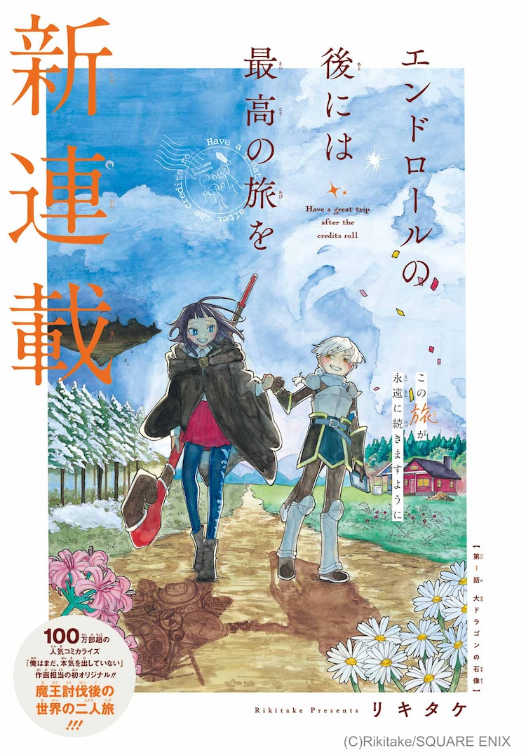 リキタケの新連載「エンドロールの後には最高の旅を」が、本日3月22日発売のガンガンJOKER4月号(スクウェア・エニックス)でスタートした。魔王を討伐した後の世界で旅する2人の英雄を描いた物語だ。