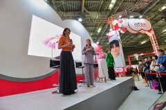 続いては節目を迎えた声優のアニバーサリーを盛り上げるAT-DXの新番組「#アニバ声優~記念に〇〇してみた~」の初回ゲスト・スフィアの寿美菜子、高垣彩陽、戸松遥、豊崎愛生が登場。AT-DXについて寿は「いろんな視点から(アニメが)楽しめる」と期待を寄せ、特にJ.C.STAFFのチーフプロデューサー・松倉友二が出演するAT-Xの番組「松倉家」を観たいと話した。
