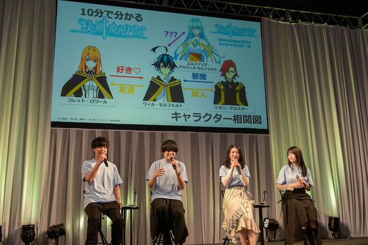 大森藤ノ、青井聖原作によるTVアニメ「杖と剣のウィストリア」のイベントステージが、本日3月24日に東京ビッグサイトで行われた「AnimeJapan 2024」内で開催された。イベントにはウィル役の天崎滉平、エルファリア役の関根明良、コレット役の天野聡美、シオン役の水中雅章が登壇し作品に関するトークを繰り広げた。