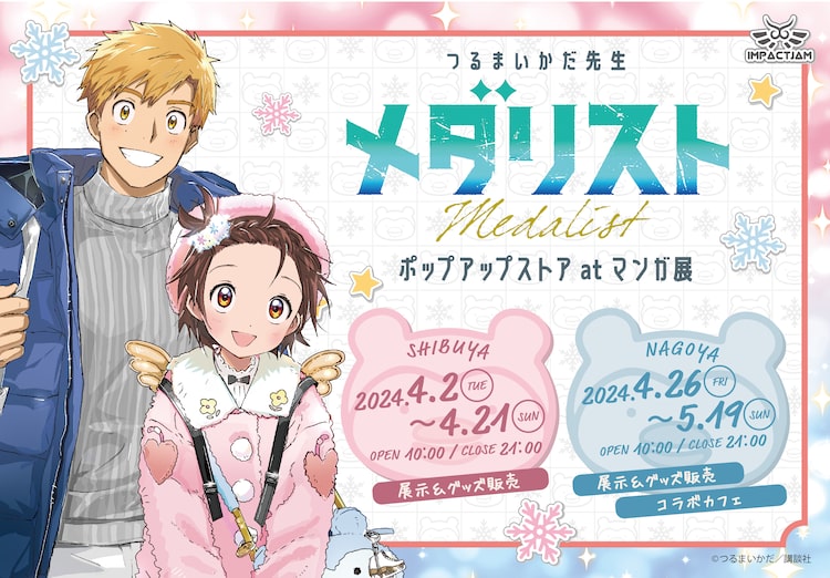 つるまいかだ「メダリスト」のポップアップストアが、4月2日から21日まで東京・マンガ展 渋谷、4月26日から5月19日まで愛知・マンガ展 名古屋で行われる。