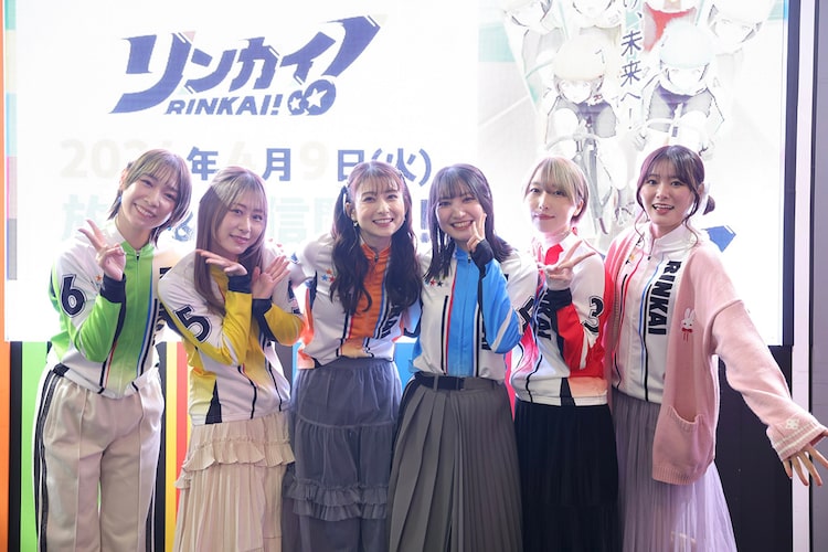 23日にMIXIブースで実施された「リンカイ!REALきゃんぷ in AnimeJapan 2024」には、伊東泉役の川村海乃、平塚ナナ役の葵あずさ、那古屋紗智役の北守さいか、熊本愛役の日向未南、高松絹早役の杉山里穂、弥彦巫子役の長谷川玲奈の6人が、キャラクターたちが劇中で着用している衣装を纏って登壇。作品の魅力について話が振られると、川村は「それぞれの人生を賭けてもがいている姿が素敵なんです。視聴者の皆さんとも、一緒に泣いて笑える作品になったなと思います」と感想を述べる。葵は「個人的に帰宅部だったこともあって、アフレコやケイリンを通して”青春”を感じています」と、自分の学生時代と重ねた。北守は「やはり勝負の世界を描いているので、甘くないところが魅力だなと思います」と忠実に女子競輪の世界を描いたことをアピールする。