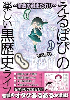 「~解放の刻来たれり~ えるぽぴの楽しい黒歴史ライフ」は、平成をオタクとして過ごしたえるぽぴの挙げたらキリがない黒歴史を描いたエッセイマンガ。ノートにオリジナルキャラや魔法一覧の設定を描いたり、ホームページを何度も作っては閉鎖したり、眼帯をして物憂げな表情をしたり、そういった黒歴史を「全部やった!!」「何故ならオタクなので!!」とえるぽぴが振り返る。「個人サイトとキリ番の話」「はじめてのコスプレに挑戦してみた時の話」などが語られる中学編、「高校デビュー大失敗の話」「動画サイトで流行ったダンスを踊りまくった話」などが展開される高校編、「同人即売会にサークル参加する話」で6話使う同人即売会編、高校に続く失敗談「専門学校デビュー失敗の話」などを収めた専門学校編、そのほか描き下ろしも収録。“禁断のオタクあるある”が満載だ。