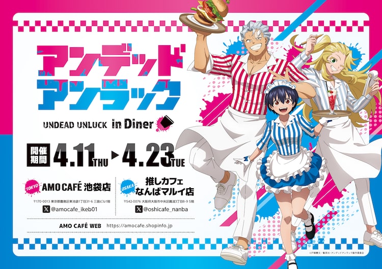 戸塚慶文原作によるTVアニメ「アンデッドアンラック」のコラボカフェが、4月11日から23日まで東京と大阪で同時開催される。