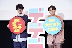 フォトセッションに移ると、カメラマンから「『デデデデ』という感じで片手を挙げてもらえますか?」というリクエストが飛び出す場面も。内山は小ぶりに、入野はガッツポーズでそれに応える。最後に内山、入野はそれぞれ作品をアピール。終始和やかな雰囲気の中、舞台挨拶は幕を閉じた。