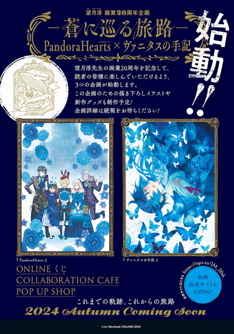 望月淳の画業20周年を記念した企画「望月淳 画業20周年企画 -蒼に巡る旅路- PandoraHearts×ヴァニタスの手記」が、今秋より順次展開予定。公式サイトが本日4月19日に公開された。