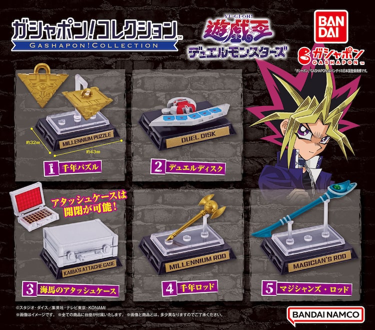 「遊☆戯☆王」アイテムのミニチュアがガシャポンに、海馬のアタッシュケースは開閉可能