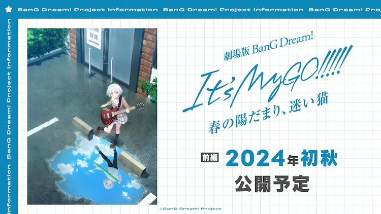 キービジュアルには楽奈が登場。足元の水たまりには、ギターではなく傘を持つ幼い楽奈が映っている。また前編が2024年初秋、後編が2024年晩秋に公開予定であることも発表された。
