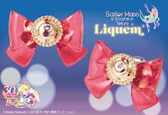 Sailor Moon storeとLiquemのコラボは今回で5回目。東京・原宿のSailor Moon store本店のリニューアルを記念して行われる今回のコラボでは、アニメ「美少女戦士セーラームーン」「美少女戦士セーラームーンR」に登場するアイテムがアクセサリーとなった。月野うさぎの変身ブローチリボンはピアス、イヤリング、リング、ピンズの4アイテムで展開。樹脂製のリボン部分は、変身シーンを彷彿させる極小のピンクラメがちりばめられた。