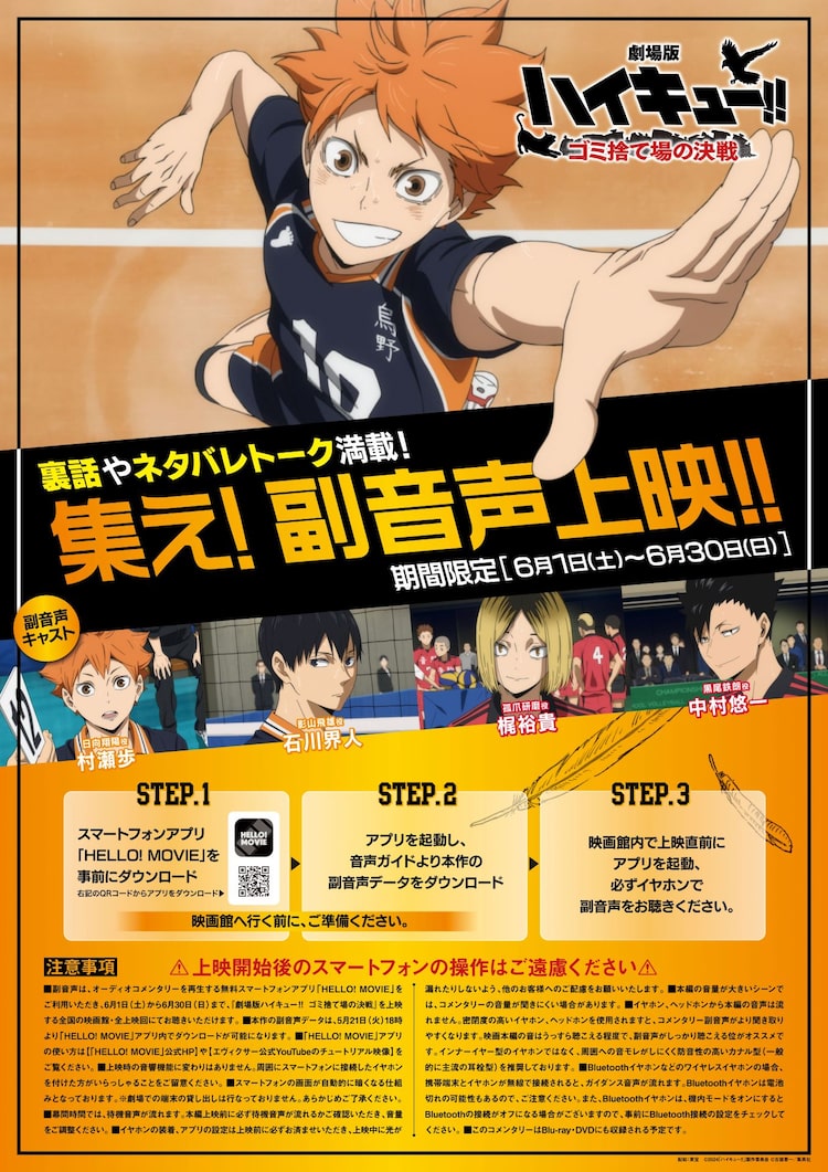 古舘春一原作による劇場版アニメ「劇場版ハイキュー!! ゴミ捨て場の決戦」の副音声上映が決定。6月1日から30日までの期間、全国の映画館および全上映回で実施される。