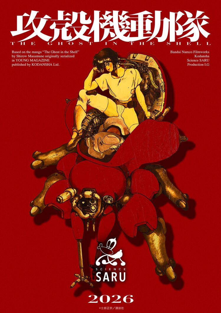 士郎正宗「攻殻機動隊」の新作TVアニメシリーズが制作決定。制作をサイエンスSARUが担当し、2026年に放送される。