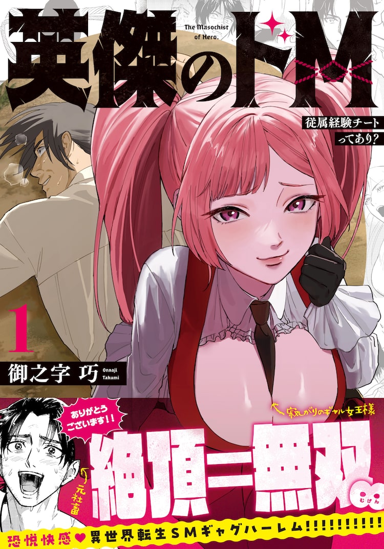 「英傑のドM 従属経験チートってあり?」の主人公・アクロは、異世界の裕福な家庭に転生した元社畜男性。幸福なはずなのに何か物足りないという悩みを抱えていたアクロが盗賊に捕まり、奴隷になったことから物語は始まる。女首領・メロアのお仕置きを受け、自分が前世ではSMクラブに通うドMだったことを思い出したアクロは、眠れる性癖と能力が開花。どんなケガを負っても全回復し、いじめられるほど強くなる体を手に入れる。理想の女王様を求めるアクロの奇妙な冒険譚を描く。