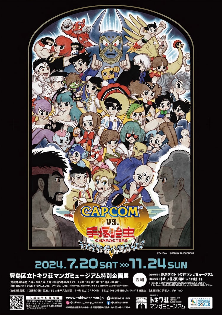 手塚治虫作品とCAPCOMのキャラクターがコラボした企画展「CAPCOM VS. 手塚治虫キャラクターズ -テヅカプファイティングユニバース2-」が、7月20日から11月24日まで東京・豊島区立トキワ荘マンガミュージアムとトキワ荘通り昭和レトロ館で開催される。