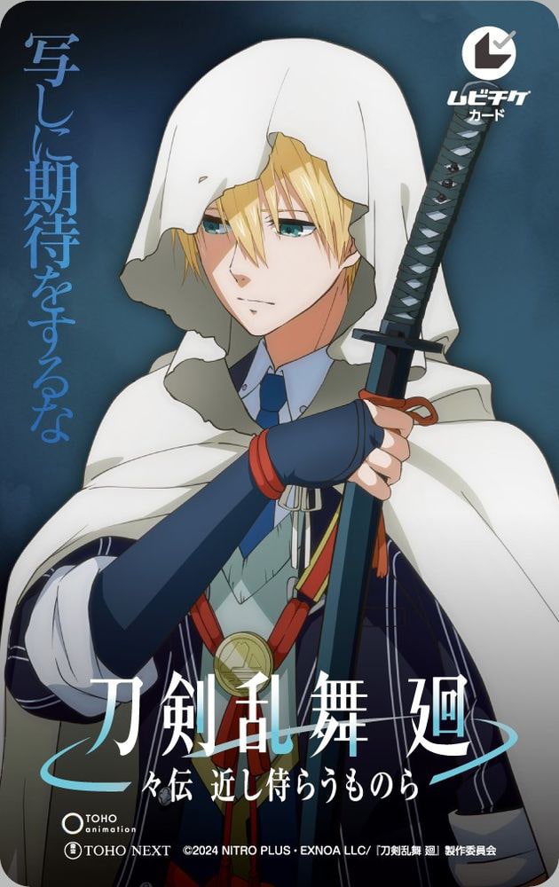 「刀剣乱舞 廻 -々伝 近し侍らうものら-」はTVアニメ「刀剣乱舞 廻 -虚伝 燃ゆる本能寺-」の前日譚を描く新作アニメ。8月16日より3週間限定で劇場上映される。グッズ付きムビチケは「山姥切国広ver.」と「へし切長谷部ver.」が用意され、各キャラクターデザインのムビチケに加え、アクリルカードケースとデコレーションシールセットが付属する。