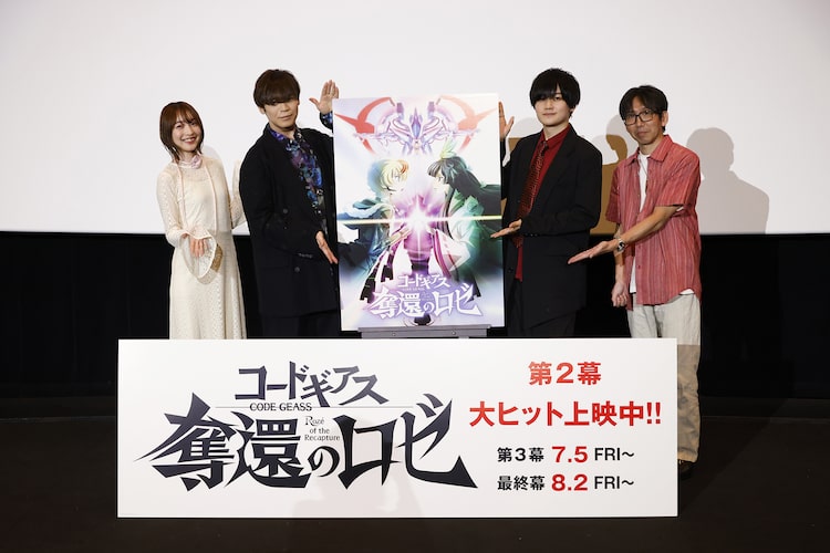 アニメ「コードギアス 奪還のロゼ」第2幕の上映記念舞台挨拶が本日6月8日に東京・新宿バルト9にて開催され、ロゼ役の天崎滉平、アッシュ役の古川慎、サクヤ役の上田麗奈、大橋誉志光監督、谷口廣次朗プロデューサーが登壇した。