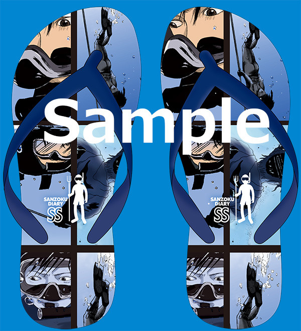 このビーチサンダルは「山賊ダイアリーSS」の「真夏の魚突き編」が今号で完結したことを記念し、作られた新グッズ。希望者はイブニング10号および11号に付属する応募券に必要事項を記入し、1足につき1400円分の切手を同封して申し込もう。締め切りは5月23日まで。なお「山賊ダイアリーSS」1巻は7月発売予定だ。