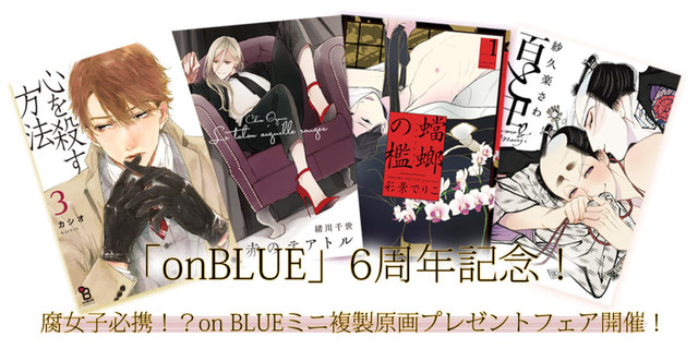 参加作家陣は緒川千世、カシオ、雲田はるこ、彩景でりこ、紗久楽さわ、園千代子、ためこう、夏野寛子、のばらあいこ、秀良子の10名。とらのあなではon BLUE本誌と号外on BLUE、on BLUEレーベルの単行本を購入した人に、1冊につき1枚ミニ複製原画がプレゼントされる。なおオンラインショップではランダムで配布されるが、店舗では好きなデザインを選ぶことが可能。なくなり次第終了なので、配布状況については各店に確認しよう。