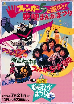 「一部復刻!東映まんがまつり1974年夏」では、グレートマジンガーがテレビ放送に先がけ登場した「マジンガーZ対暗黒大将軍」、仮面ライダー1号、仮面ライダー2号、仮面ライダーV3、ライダーマン、Xライダーが一堂に会す「五人ライダー対キングダーク」、当時の人気アイドルグループ ・フィンガー5が出演した貴重な映画作品「フィンガー5の大冒険」の3作品を上映。さらに本多真梨子、稲田徹、ゲームクリエイターの寺田貴信、五十嵐浩司氏、バンダイスピリッツの岡崎聖氏、音楽ライターの早川優氏が登壇し、トークを繰り広げる。チケットは7月13日24時より販売予定だ。