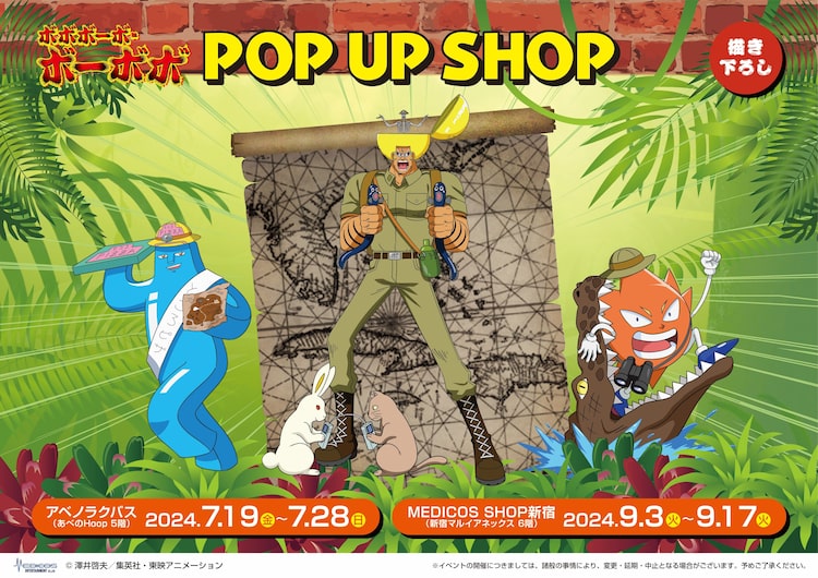 澤井啓夫原作によるアニメ「ボボボーボ・ボーボボ」のポップアップショップが東京と大阪で開催決定。大阪会場は7月19日から28日まで大阪・アベノラクバスにて、東京会場は9月3日から17日まで東京・MEDICOS SHOP新宿にて開催される。