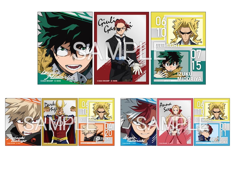 8月2日に劇場公開される「僕のヒーローアカデミア THE MOVIE ユアネクスト」。ステッカーは緑谷出久、ジュリオ・ガンディーニ、緑谷出久&オールマイトのAセット、爆豪勝己、ダークマイト、爆豪勝己&オールマイトのBセット、轟焦凍、アンナ・シェルビーノ、轟焦凍&オールマイトのCセットから選ぶことができる。ムビチケカードにはティザービジュアルがデザインされた。