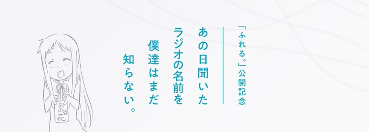 これは「あの日見た花の名前を僕達はまだ知らない。」を手がけた“超平和バスターズ”こと、監督の長井龍雪、脚本の岡田麿里、キャラクターデザイン・総作画監督の田中将賀による新作映画「ふれる。」の公開を記念したもの。茅野は「『あの花ラジオ』がこの夏帰ってきます!! 秩父3部作の思い出話をしながら、超平和バスターズの新作『ふれる。』の劇場公開を一緒に待ちましょう~!」と喜びのコメントを寄せた。
