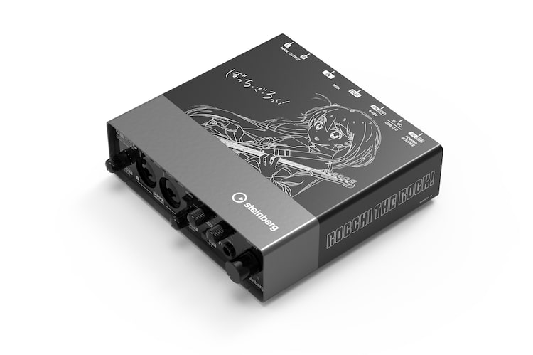 作中で主人公・後藤ひとりが愛用するオーディオインターフェースとして描かれた、ドイツのオーディオソフトウェアブランド・スタインバーグの「UR-C」シリーズ。そのコラボモデルとなる「UR22C Bocchi Edition」の天面には、ひとりの描き下ろしイラストがプリントされた。側面には「ぼっち・ざ・ろっく!」のロゴと、通称“ツチノコぼっち”のイラストがあしらわれている。