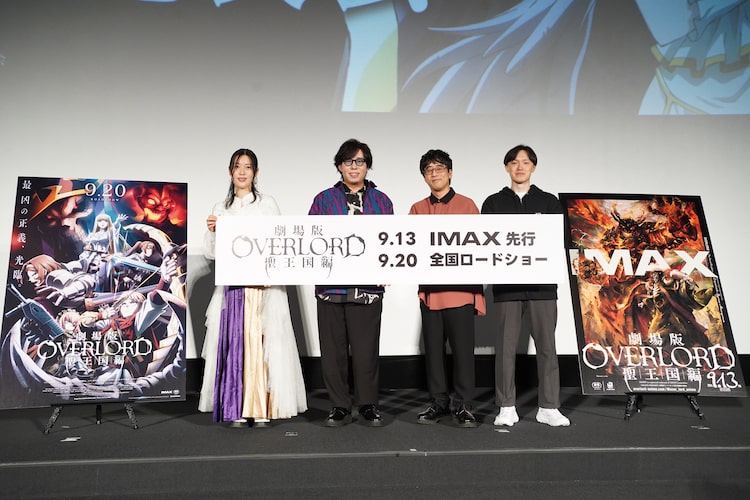 続いて解禁されたのは劇場版のキービジュアル。アインズの手の中に収まる聖王国の人々の姿に、菊島プロデューサーが「ひどい目に遭うと思います(笑)」とコメントすると、客席からも笑いが起こる。原は「アルベドがいないのはちょっと寂しいけど、アフレコしたうえで『うんうん』って納得するようなキービジュアル」とネタバレを避けながら感想を述べた。さらに本予告もお披露目され、9月20日公開、さらにIMAXでは13日に先行公開されることも明らかに。菊島プロデューサーは「発表しちゃいましたね……(笑)」とプレッシャーの重さをにじませつつも、「ギリギリまで作ってると思います。死力を尽くして最後まで作っていきたいです」と意気込んだ。