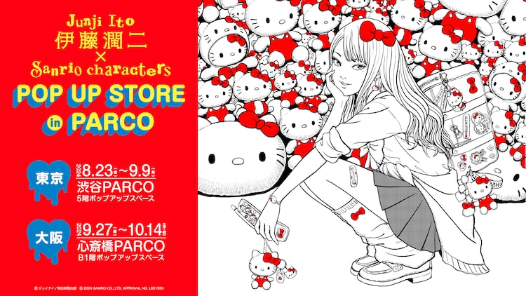 伊藤潤二作品とサンリオキャラクターズがコラボレート。伊藤の描き下ろしイラストを使用したコラボグッズを販売するポップアップストアが、東京・渋谷PARCO、大阪・心斎橋PARCOで実施される。