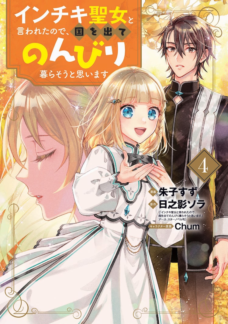 「インチキ聖女と言われたので、国を出てのんびり暮らそうと思います」は日之影の小説を朱子がコミカライズした作品。偽の聖女だと噂され国を追放された少女・フレメアが、お付きの騎士・ロランとともに新たな土地でのんびりとしたスローライフを送る様が描かれる。4巻では魔王との戦いに決着をつけたロランがフレメアに秘めていた思いを伝える。