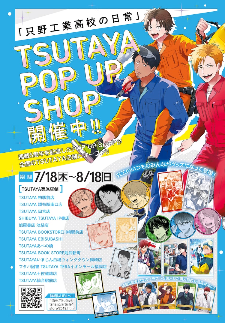 小賀ちさと「只野工業高校の日常」の連載5周年を記念したPOP UP SHOPが、全国の一部TSUTAYAで8月18日まで開催されている。