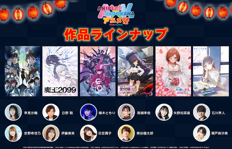 「アニプレックス×KADOKAWA アニメ祭」はKADOKAWAのライトノベル作品を原作とするアニメの最新情報を届ける番組。「魔法科高校の劣等生」「魔王2099」「ソードアート・オンライン オルタナティブ ガンゲイル・オンラインII」「ギルドの受付嬢ですが、残業は嫌なのでボスをソロ討伐しようと思います」「クラスの大嫌いな女子と結婚することになった。」と「青春ブタ野郎」シリーズの6作品をリレー形式で配信する。また特番のCM映像も公開に。「クラスの大嫌いな女子と結婚することになった。」で桜森朱音役を務める矢野妃菜喜がナレーションを務める。