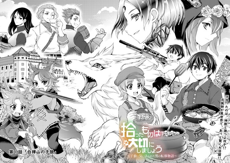 猟師のイオリはいつものように山に入ったある日、子狼を助けたことをきっかけに異世界に転移する。子供の姿で目を覚ましたイオリは、助けた子狼と会話ができるようになっていて……。心優しいが料理のこととなると暴走しがちになるイオリと、彼の拾った“大切なもの”たちによる充実した異世界ライフが繰り広げられる。アルファポリスで人気ランキング第1位を獲得した小説のコミカライズだ。作品は毎月第1火曜日に更新される。