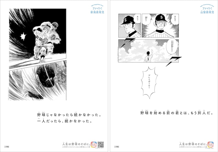 「高校球児にエール! 全国49箇所高校球児応援ポスター」と題したこの企画は、小学館のマンガアプリ・サンデーうぇぶりで展開されている、あだち充作品が無料で読める「あだち充夏祭り2024」に合わせて展開されているもの。野球の練習から得られる楽しさやつらさ、親兄弟や仲間との関係、成功と挫折、最愛の人との死別など、あだちが表現する青春の1ページを用いて49種類のポスターが制作された。