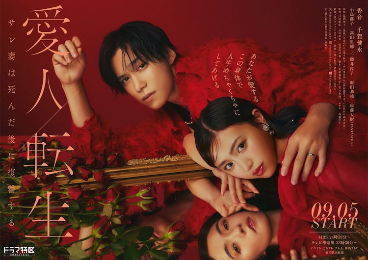 同作は夫と義両親に虐げられていた千里が、ある事故をきっかけに夫の愛人の体に“転生”し、彼女に成り代わって夫を破滅へと導いていく復讐劇。千里が転生した愛人・瑠奈役を香音、家では千里にモラハラをする夫・悠太役を千賀健永(Kis-My-Ft2)が演じ、9月5日よりMBS「ドラマ特区」枠で放送される。