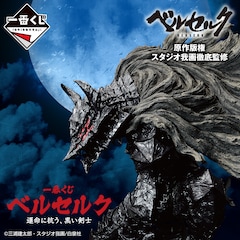 A賞は狂戦士の甲冑を纏ったガッツのフィギュア。MASTERLISEシリーズとして、臨場感と迫力あふれる造形で立体化された。B賞にはガッツが譲り受けた“ドラゴンころし”のフィギュアをラインナップ。付属の換装用腕パーツをA賞と組み合わせれば、“ドラゴンころし”を持つガッツの姿を再現できる。C賞では“蝕”にスポットを当てたビッグタオル、D賞ではMASTERELIVE COLLECTIONよりベヘリットのフィギュアが全3種から1つが手に入る。E賞にはアクリルスタンド、F賞にはジャガードタオル、G賞にはラバーコースターがそれぞれ用意された。