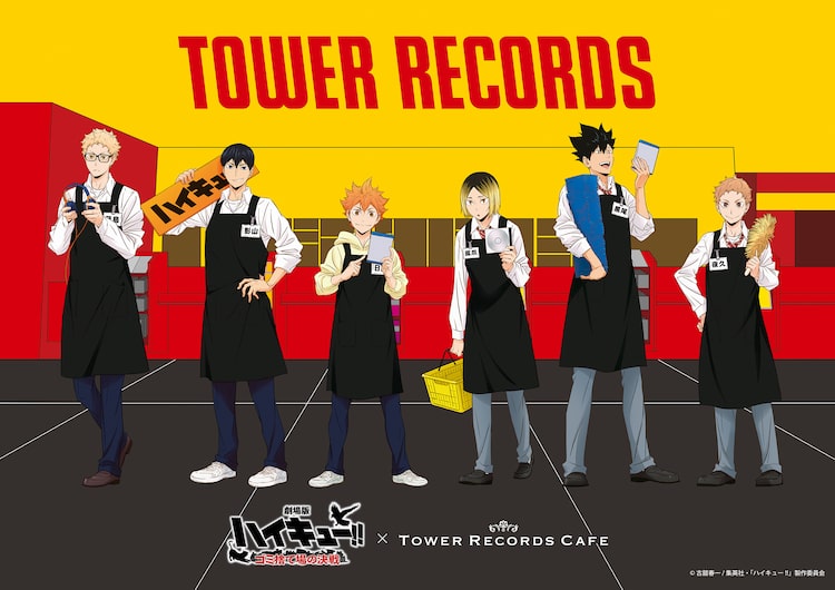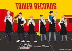 10月24日から11月8日までの前期と11月9日から24日までの後期にわけて、TOWER RECORDS CAFEの東京・渋谷店、愛知・名古屋栄スカイル店、大阪・梅田NU茶屋町店、福岡・福岡店で実施される今回のコラボカフェ。会場では、店員姿の日向翔陽、影山飛雄、月島蛍、孤爪研磨、黒尾鉄朗、夜久衛輔の新規描き下ろしビジュアルを使用した「BIGアクリルスタンド」などのグッズが先行販売される。会場限定グッズとして「缶入りキャンディ」全2種を用意。またコラボフード・ドリンクの提供も行われる。特典として販売グッズおよびコラボフード・ドリンクを税込2000円購入ごとに、「コースター風カード」全8種の中からランダムで1枚をプレゼント。なおテイクアウトメニューのみの利用も対象となる。