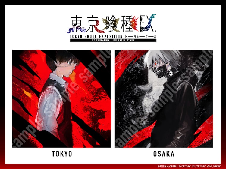 10月21日から12月1日まで東京・寺田倉庫G1ビル、12月14日から29日まで大阪・VS.(ヴイエス)で開催される「東京喰種EX.」。来場者プレゼントとして、東京会場では「あんていくの制服を身に纏った金木研」、大阪会場では「ヤモリ戦を経て覚醒、白髪になった金木研」のイラストが描かれたミニ色紙が配布される。