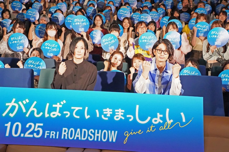 イベント後半では作品名に絡め、来場者より寄せられたメッセージを2人が読み上げ「がんばっていきまっしょい!」とエールを贈るコーナーも展開された。また江口と監督が互いの「がんばっているところ」を紹介するひと幕では、櫻木監督は「ちゃんと朝起きて仕事に行っているのが偉いです」と飲み友達らしいコメント。江口は冒頭でも触れた今作への監督の苦悩に触れ、「がんばっている姿を間近で観ていたので、監督のがんばりがより多くの方に届くことを願っております」と、作品への応援を改めて呼びかけた。