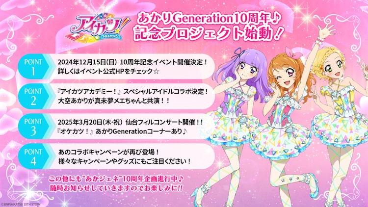 「アイカツ!」の「あかりGeneration」が10周年!12月に下地紫野ら出演のイベント