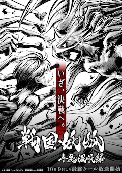 7月に放送開始され、10月9日より最終クールに突入する「戦国妖狐 千魔混沌編」。イメージビジュアルには「いざ、決戦へ。」というキャッチコピーとともに、戦う千夜と迅火の姿が捉えられた。