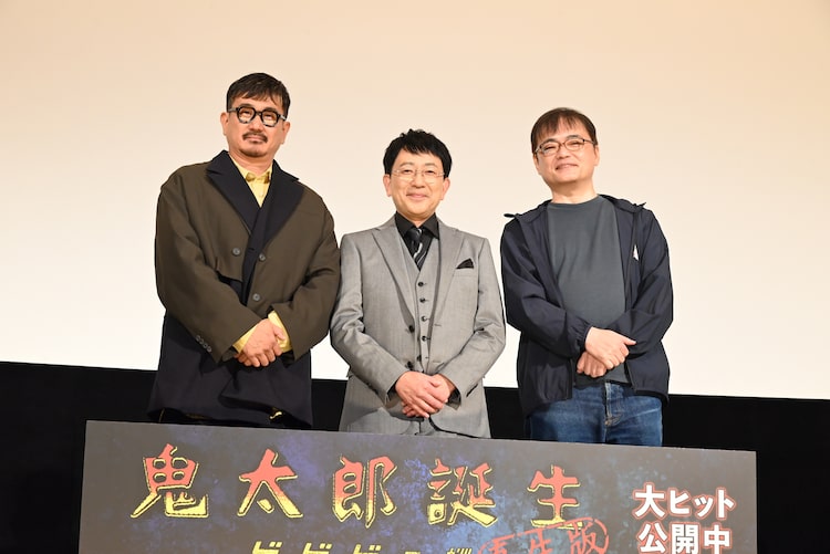 水木しげる原作によるアニメ映画「鬼太郎誕生 ゲゲゲの謎 真生版」の公開記念舞台挨拶が、本日10月5日に東京・丸の内TOEIで開催され、鬼太郎の父役の関俊彦、水木役の木内秀信、古賀豪監督が登壇した。