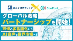 声優事務所・青二プロダクションが、AIを利用したサービスの開発・提供を行うCoeFontと、AI音声技術を活用したグローバル戦略を展開するためのパートナーシップを締結。青二プロダクションに所属する声優の音声データが、CoeFontのAI音声技術を用いて英語や中国語などに多言語化される。