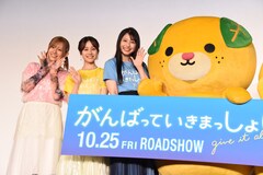劇場アニメ「がんばっていきまっしょい」の上映イベント「劇場アニメ『がんばっていきまっしょい』 みきゃんからの挑戦状!?スペシャル上映会」が、本日10月12日に東京・ユナイテッド・シネマ豊洲で開催され、悦ネエこと村上悦子役の雨宮天、ヒメこと佐伯姫役の伊藤美来、リーこと高橋梨衣奈役の高橋李依が登壇した。